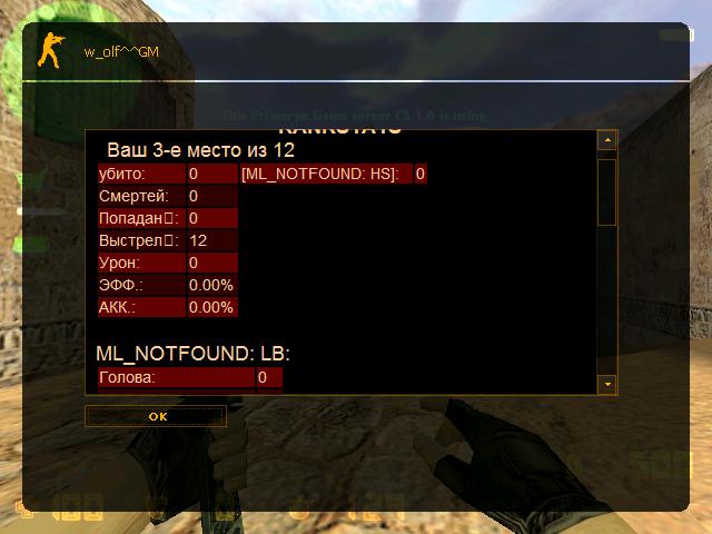 | HS = хедшот, всё правильно, возможно надо его добавить в statsx.txt т.к. statsx включает только его Code register_dictionary("statsx.txt") Добавлено (2008-02-13, 7:50 Pm) --------------------------------------------- а чего у тебя таблица такая? и модели убогии, ещё мой дедушка с такими гамал